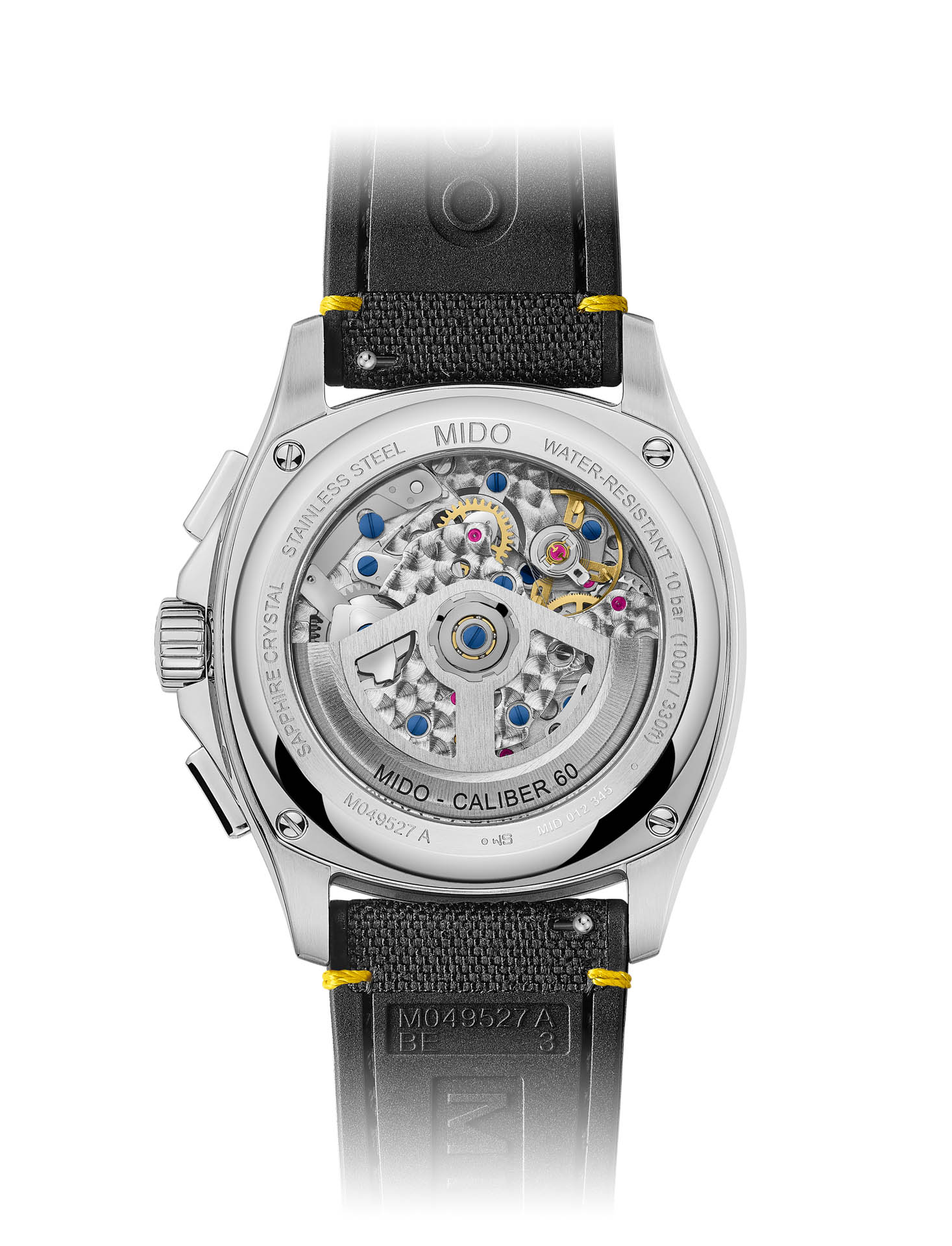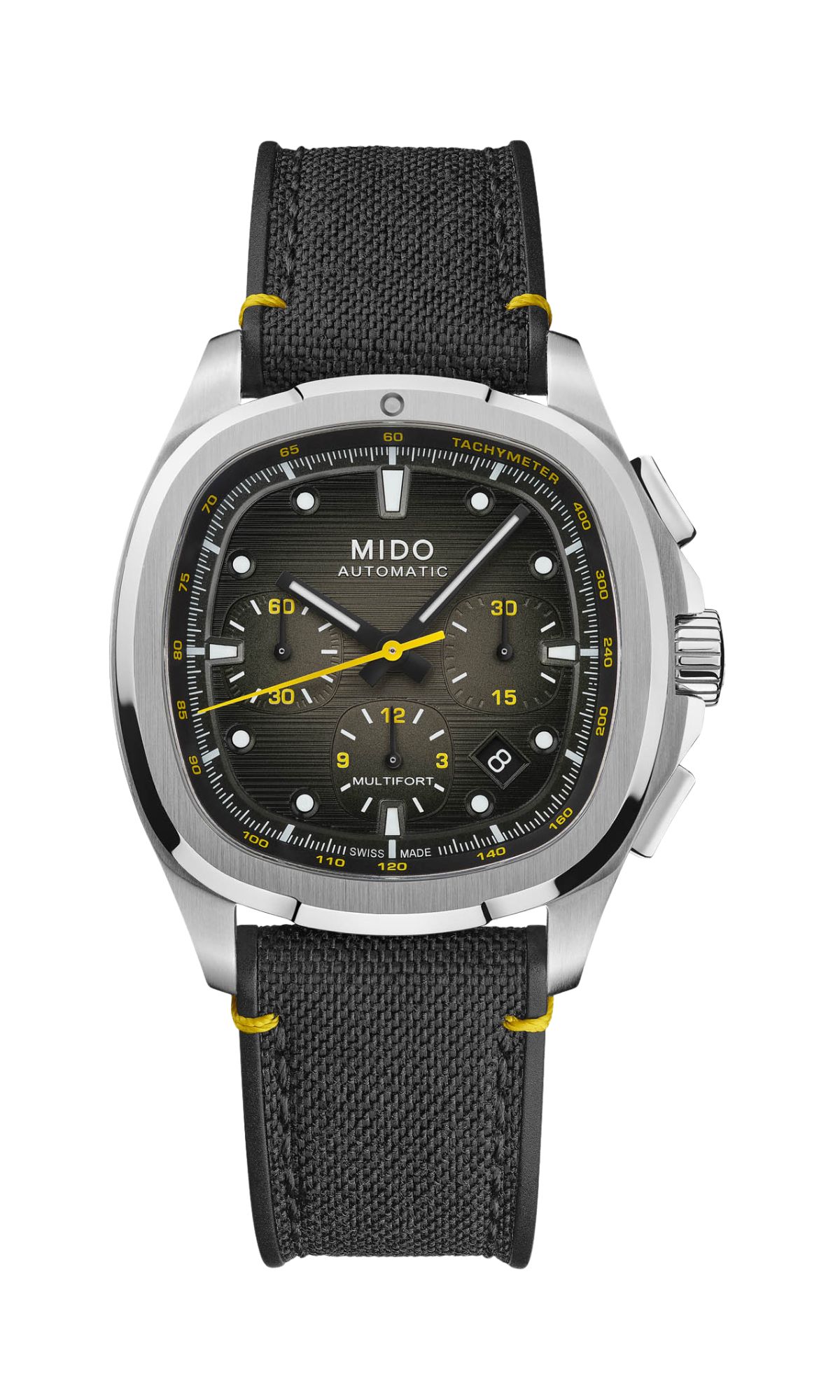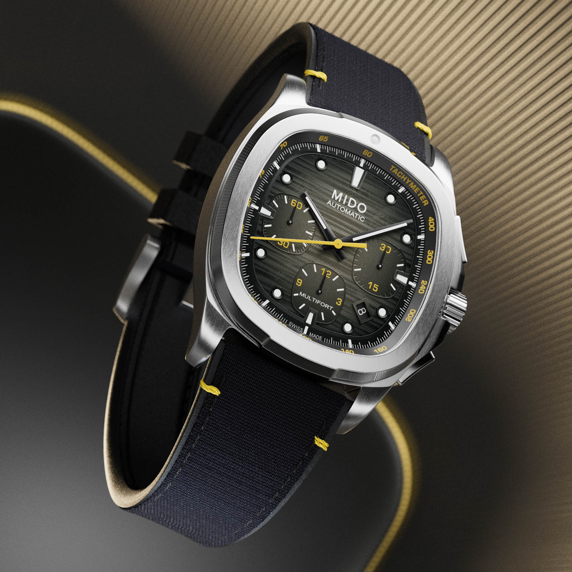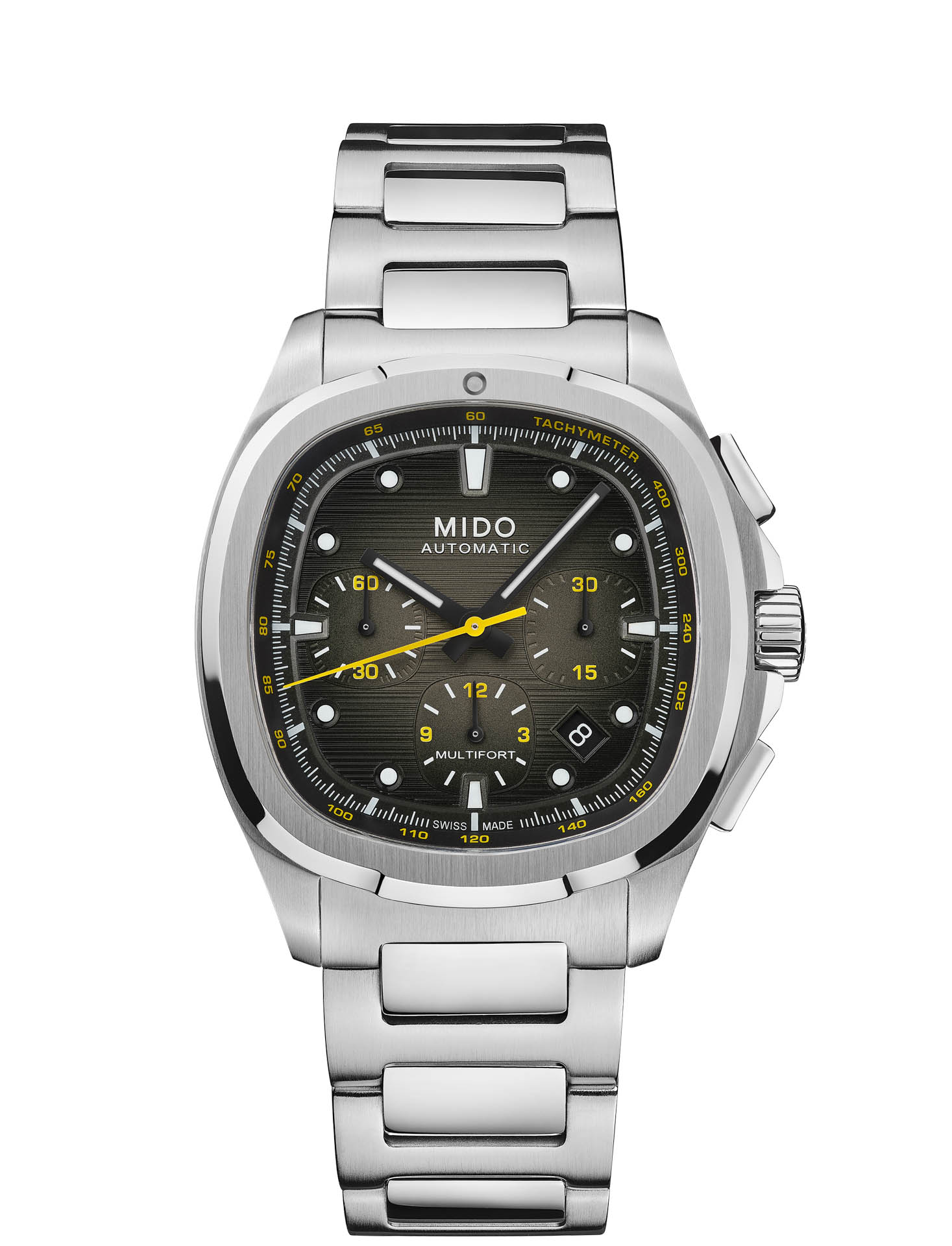 ¡Un diseño que capta todas las miradas! Fiel al espíritu audaz de MIDO, Multifort TV Chronograph impone su carácter con una caja única en forma de TV. Su silueta contemporánea se realza con una carátula cepillada en horizontal, dos contadores integrados con sutileza y detalles en contraste que resaltan su personalidad.