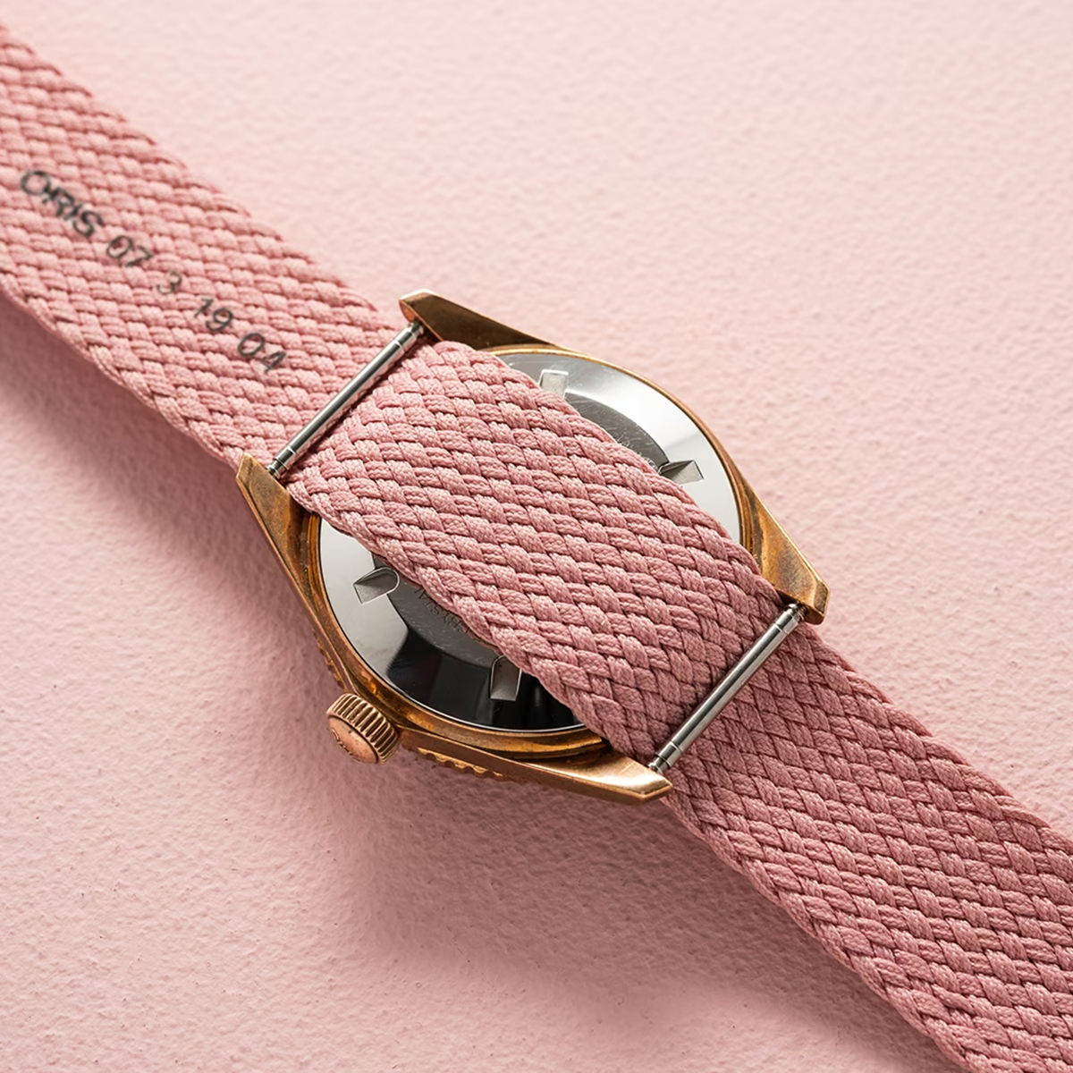 Los tonos cálidos del nuevo modelo proceden de su caja de bronce, su bisel estriado y su característico diseño vintage, que se complementan con una esfera de un color rosa intenso con índices dorados impresos.