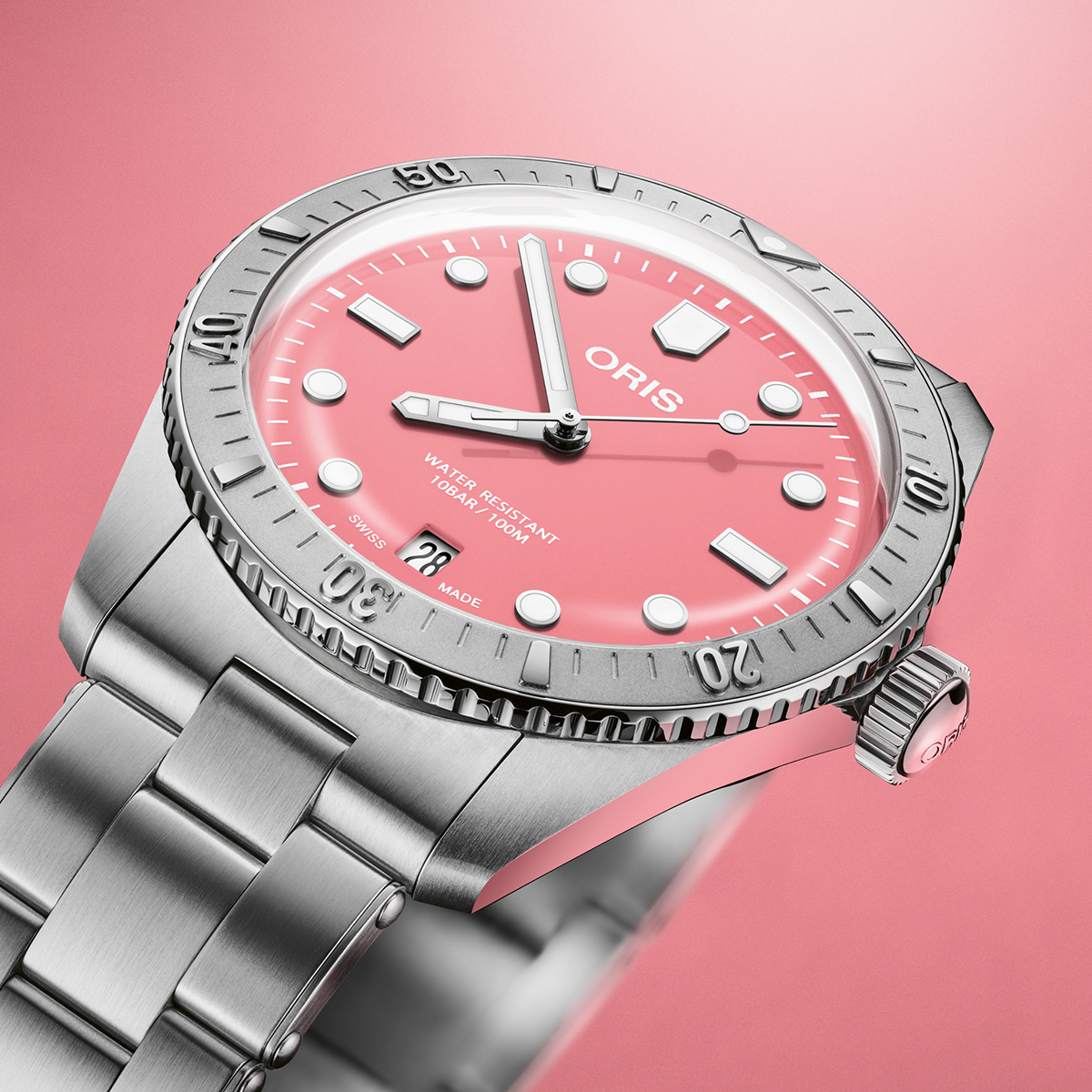 El Divers Cotton Candy, un icono de Oris desde 1965, ahora en bronce con una destacada esfera en color rosa. Una pieza icónica de la relojería suiza.